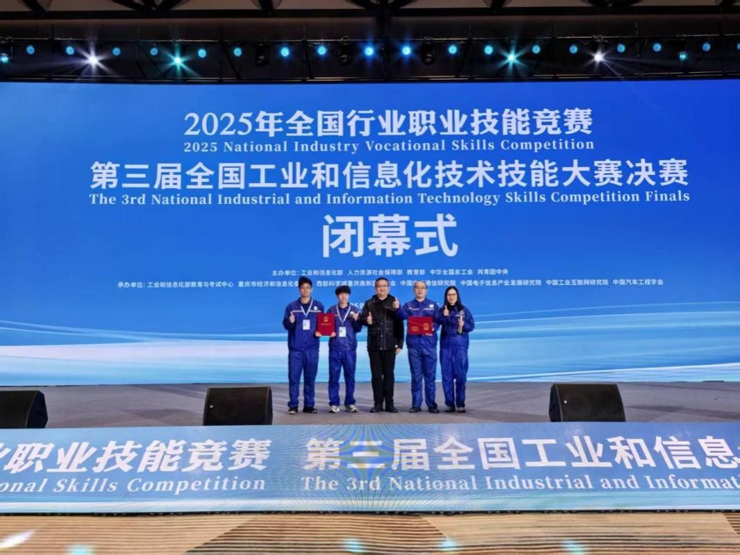 11月28日,由工业和信息化部、人力资源和社会保障部、教育部、中华全国总工会、共青团中央五部委联合主办的第三届全国工业和信息化技术技能大赛决赛在重庆圆满落幕。开云电子平台_开云(中国)智能制造与汽车学院(航空学院)师生代表队表现亮眼:教师范梦阳、邓家彬组成的参赛团队勇夺职工组全国一等奖,由姚晶晶老师指导的学生易灯辉、王希洋斩获学生组全国二等奖,师生双线告捷,从全国 30个省区市及央企的408支队伍、800余名选手中脱颖而出,为重庆本土院校赢得殊荣。