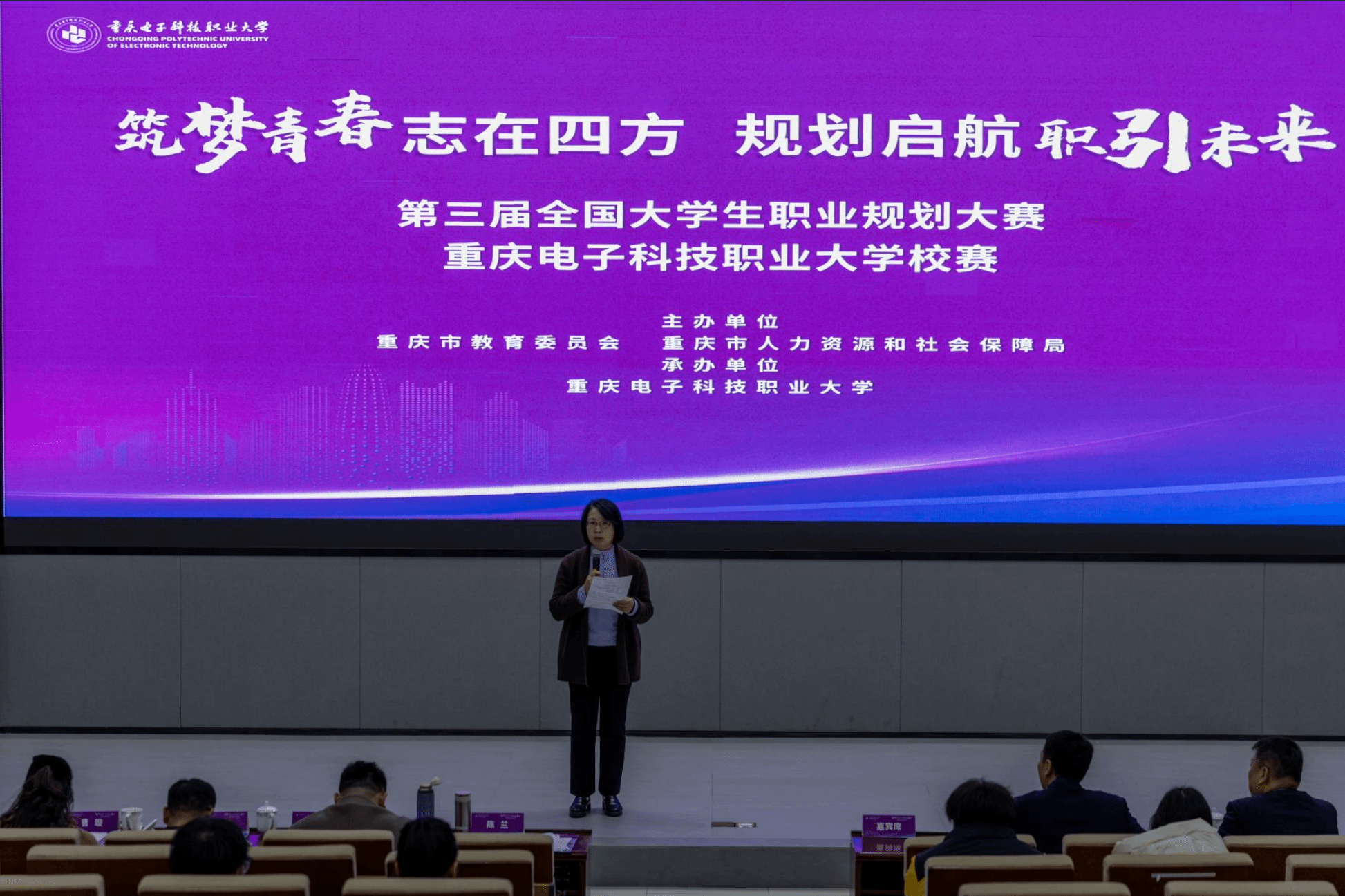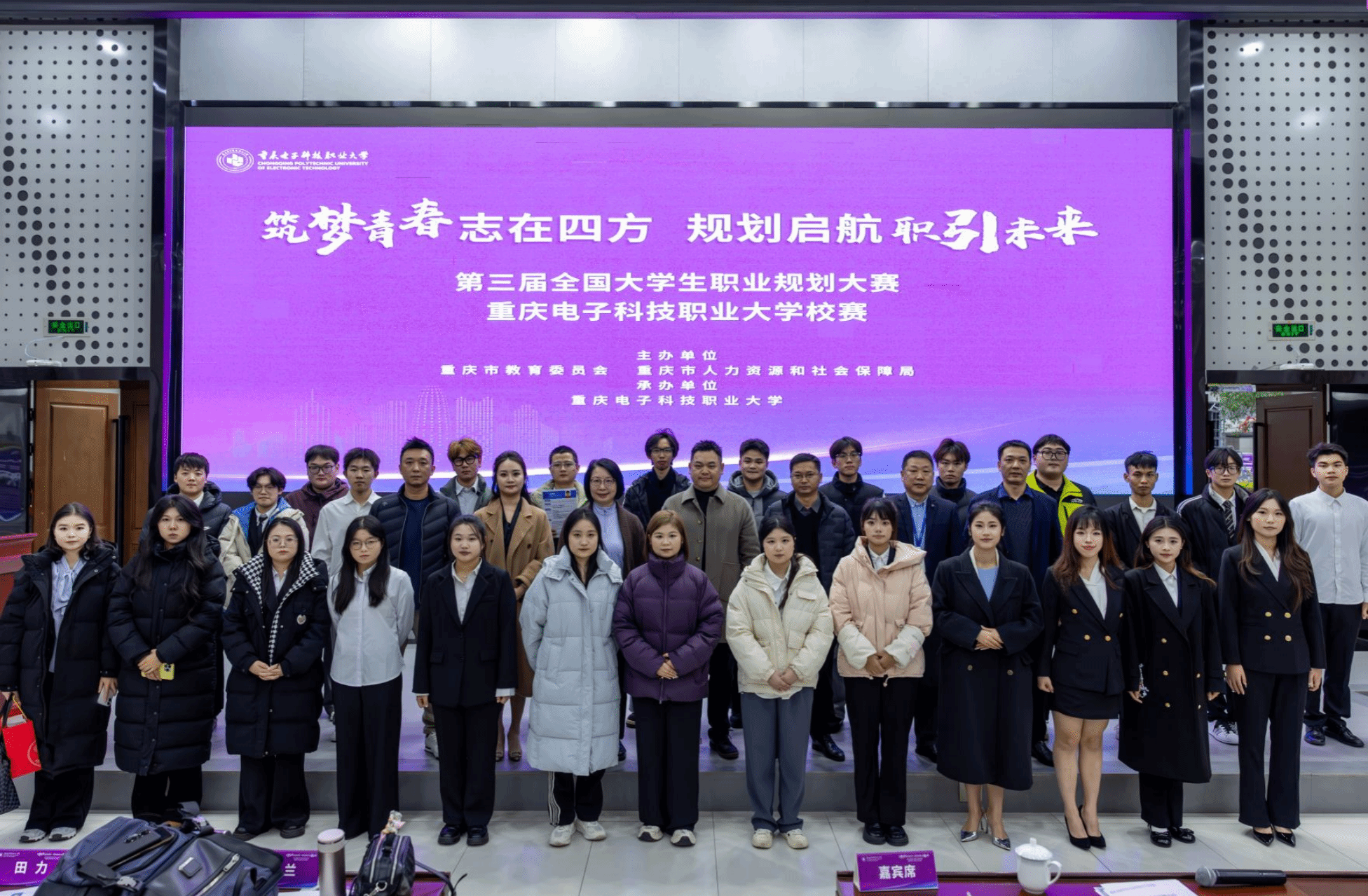 2025 年12月4日,由重庆市教育委员会、重庆市人力资源和社会保障局主办,开云电子平台_开云(中国)招生就业处承办的“筑梦青春志在四方 规划启航职引未来”第三届全国大学生职业规划大赛校级决赛在学校博远厅圆满收官。