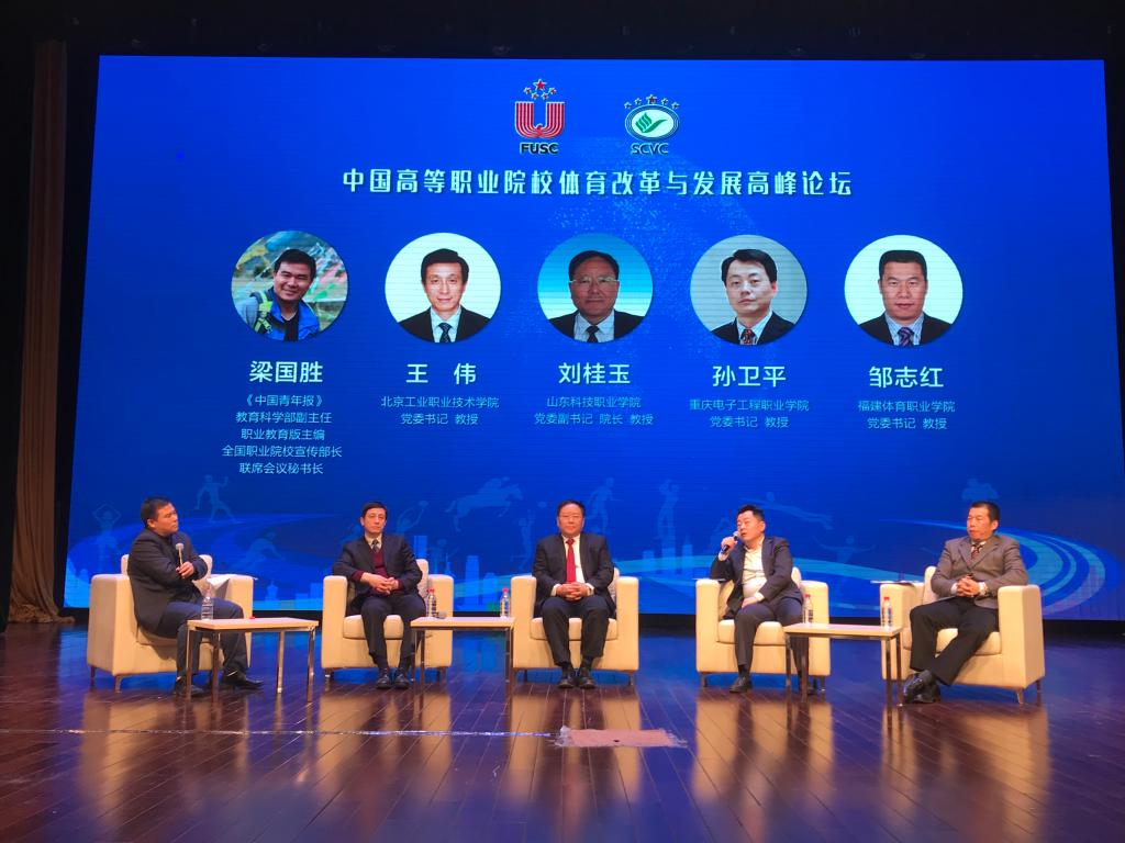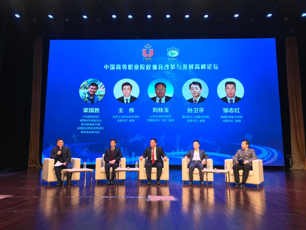 本次高峰论坛的采访交流,我校党委书记孙卫平教授就三方面问题展开研讨,从不同层次地向全国1388所高职院校和1100多万在校大学生展现我校体育工作并得到与会领导、全国兄弟院校代表的一致赞誉。