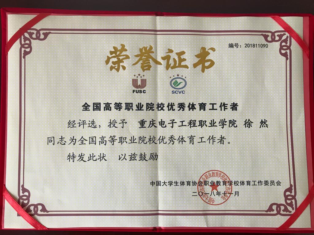 与此同时,职教分会成立10周年颁奖盛典中,我校体育与国防教学部副部长徐然被评为全国高等职业院校优秀体育工作者。