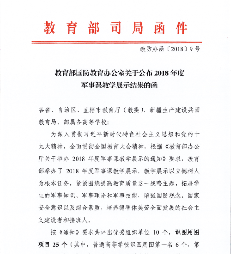 2018年12月24日,教育部公布了2018年度军事课教学展示活动结果,我校智慧健康学院和校武装部联合组队的机器人项目,在众多展示项目中脱颖而出,荣获普通高校组第二名的优异成绩。