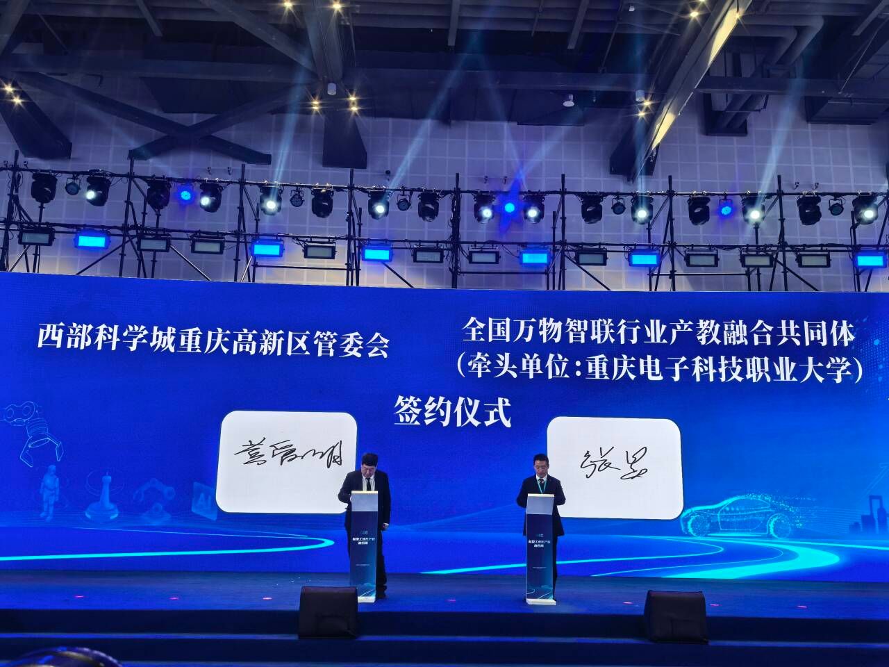 2025年11月27日,首届新型工业化产教融合展于中国重庆科学会堂举行,本次展会以“智·聚英才 融·创未来”为主题,旨在探索和展示"产、学、研、用"一体化的最新成果与未来方向。在开幕式上,作为全国万物智联行业产教融合共同体牵头单位,开云电子平台_开云(中国)与西部科学城重庆高新区管委会正式签署战略合作协议,我校副校长黄爱明出席并签署合作协议。本次签约标志着双方将在更高层次、更广领域内展开深度合作,共同为区域乃至全国科技创新与产业升级注入新的活力。