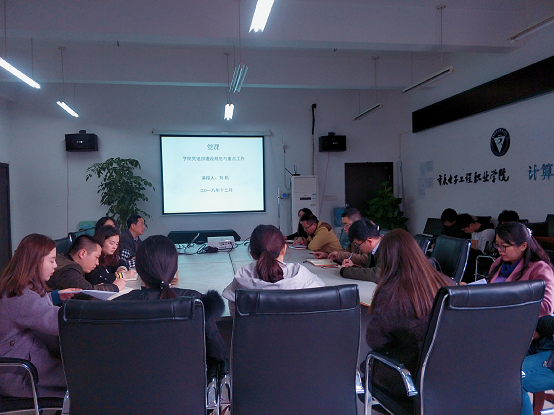 2018年12月3日中午,人工智能与大数据学院正处级专职组织员刘松教授在1110党员活动室组织召开了学院党组织建设规范与重点工作专题党课暨党建基本知识专题培训会,就基层党组织规范化建设和党建重点工作等相关内容进行讲授和培训,会议由学院党总支宣传委员黄婧雯老师主持,学院全体党支部书记及支部委员参加。