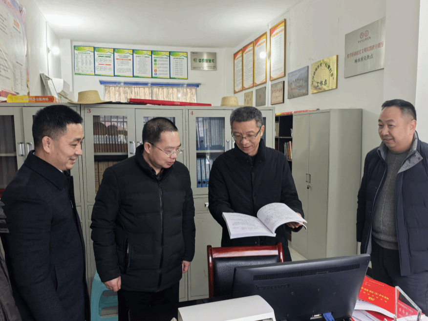 张伟查阅驻村第一书记刘友庚的工作笔记