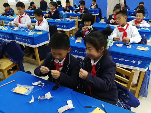 为了直观、形象、有趣地讲解知识,林涛和毛朝庆老师给盛德沙小二年级的小朋友们展示了光立方、循迹小车、俄罗斯方块游戏机、旋转光字幕等电子小制作,并结合火灾安全教育,让小朋友们组装电子火灾报警器模型。小朋友们兴致盎然,在点亮电子火灾报警器模型上发光二极管的同时,不仅学习了电子方面的知识,而且锻炼了实践动手能力、增强了用电防火安全意识。