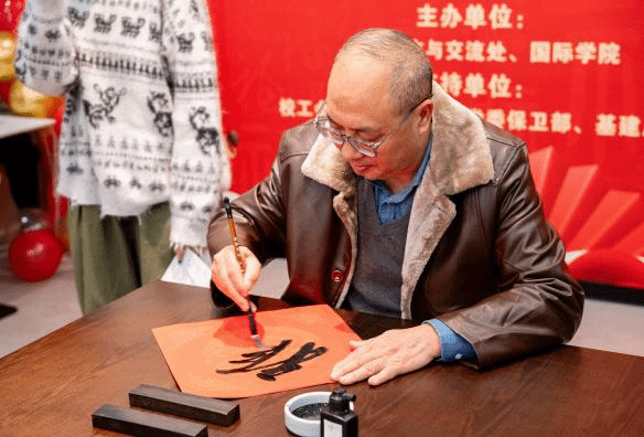 活动伊始,刘洪光致新年贺词,向中外师生送上节日祝福,他表示,学校始终重视国际化校园建设,希望通过此类活动增进中外师生理解,让留学生在异国他乡感受家的温暖。随后,幸昆仑现场挥毫赠“福”,笔墨间的传统文化韵味让留学生们深切体会到中国节日的独特魅力
