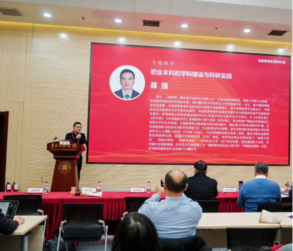 会上,北京大学集成电路学院重点介绍了其“未来集成电路产业创新中心”的建设经验与运行机制,分享了在产教融合、协同育人方面的创新实践。聂强受邀做题为《职业本科的学科建设与科研实践》的主旨报告,和与会嘉宾就集成电路产业人才需求趋势、课程体系改革、校企合作平台搭建等话题进行了多角度、多层次的对话。