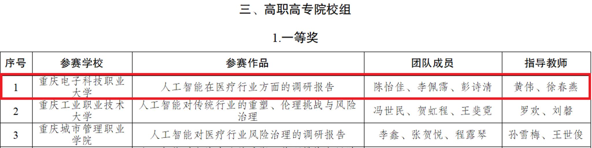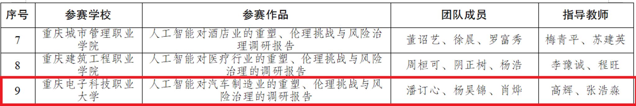 近日,重庆市教育委员会发布了《关于2025年重庆市大学生信息素养大赛获奖情况的通报》(渝高教函〔2026〕5号),我校代表队喜获高职高专院校组团体一等奖、二等奖各一项,团体三等奖两项,我校荣获大赛突出贡献集体称号。
