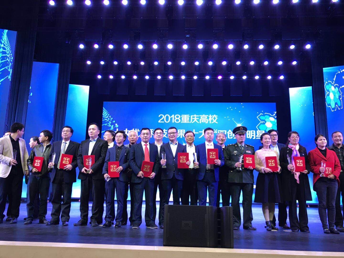 会上,重庆市高等教育学会会长欧可平宣读了荣获十大优秀科技成果项目团队和荣获十大“双创”明星的文件,颁奖嘉宾分别为获奖的团队、老师和学生颁发了奖杯和荣誉证书。在此次评选活动中,我校唐艳辉教授作为孵化平台建设者、杨成兴同学作为创新创业学生,与本科院校师生同台竞技,同时被评为十大“双创”明星,成为重庆市高职高专唯一师生同获该殊荣的院校。