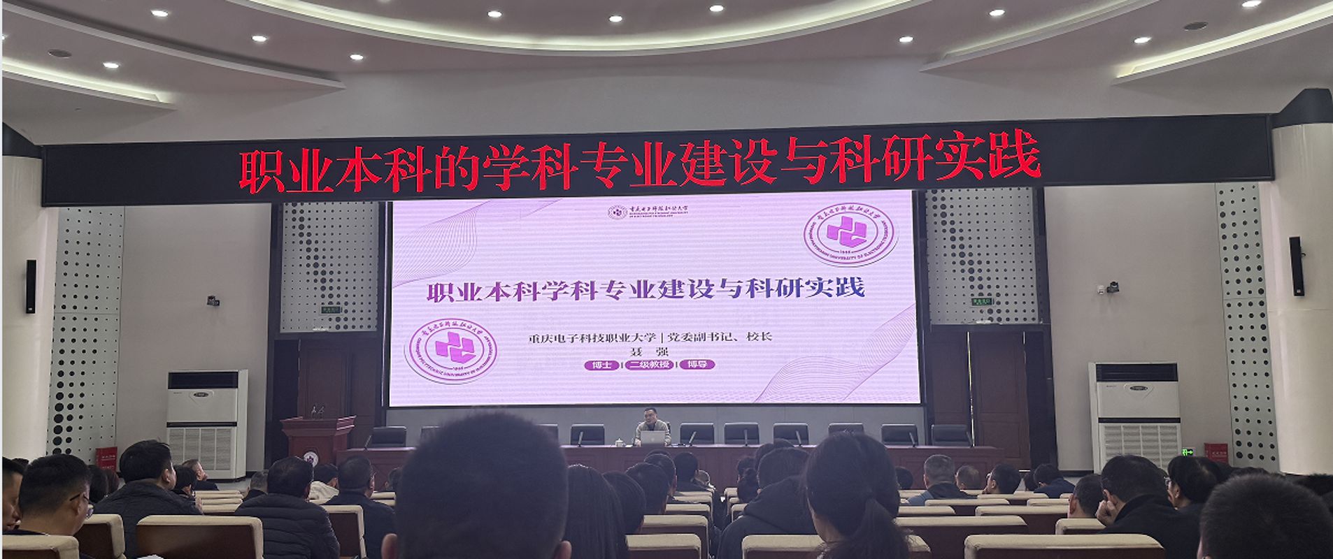 党委副书记、校长聂强以《职业本科的学科专业建设与科研实践》为题作专题讲座。聂校长围绕学科专业建设的思考、重电学科专业建设、重电的科研实践三方面进行深刻阐释。回顾了职业本科教育发展历程、明晰了职业本科教育的内涵定位、解读了职业本科学科建设的内涵意蕴、职业本科学科建设的行动路径等,并重点分享了对我校学科专业建设的思考和构想,包括专业课程体系建设、师资锻造模式、开云电子平台_开云(中国)实践等方面,强调我们要把握时代发展大势、找准职教本科定位,探索符合职业本科特点的学科专业建设与科研实践路径,构建与之适应的开云电子平台_开云(中国)体系,奋力担当“重电”使命,早日实现“重电”愿景。