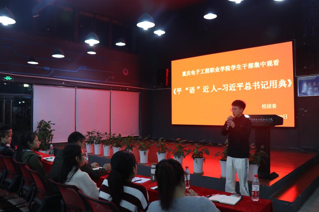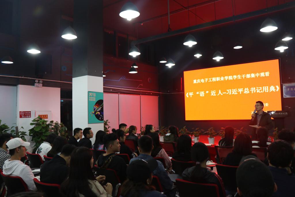 为了深入学习贯彻习近平总书记系列重要讲话精神,引导广大青年学生在思想与行动上向习近平总书记学习,2018年10月10日晚八点,我校校团委组织学生干部在众创空间路演大厅集中观看了由中央电视台综合频道推出的《百家讲坛》特别栏目《平“语”近人——习近平总书记用典》。校团委老师及校学生干部共80余人一同观看了专题片。