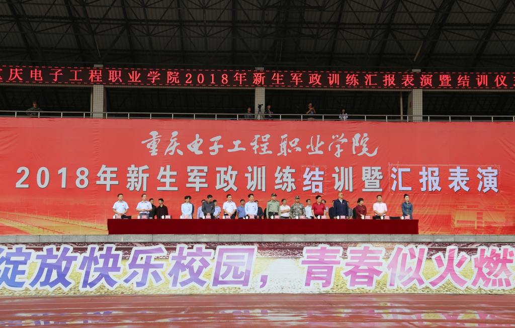 2018年9月21日上午,我校2018级新生军政训练结训典礼暨总结表彰大会在重电奕晖运动场拉开序幕。中国人民解放军重庆市沙坪坝区人民武装部政委刘星大校,中国人民解放军西藏军区山南军分区、2018级新生军政训练团参谋长王灿大校,重庆电子工程职业学院党委书记孙卫平,校长聂强,党委副书记唐玉林,纪委书记陈丽,副校长王平、幸昆仑、刘成俊、谢义华、龚小勇、冉学农,党委委员、组织部长刘洪光,党委委员、宣传部长疏勤及各二级学院书记、院长,中国人民解放军重庆市沙坪坝区人民武装部全体承训教官出席此次结训典礼。大会由龚小勇主持。