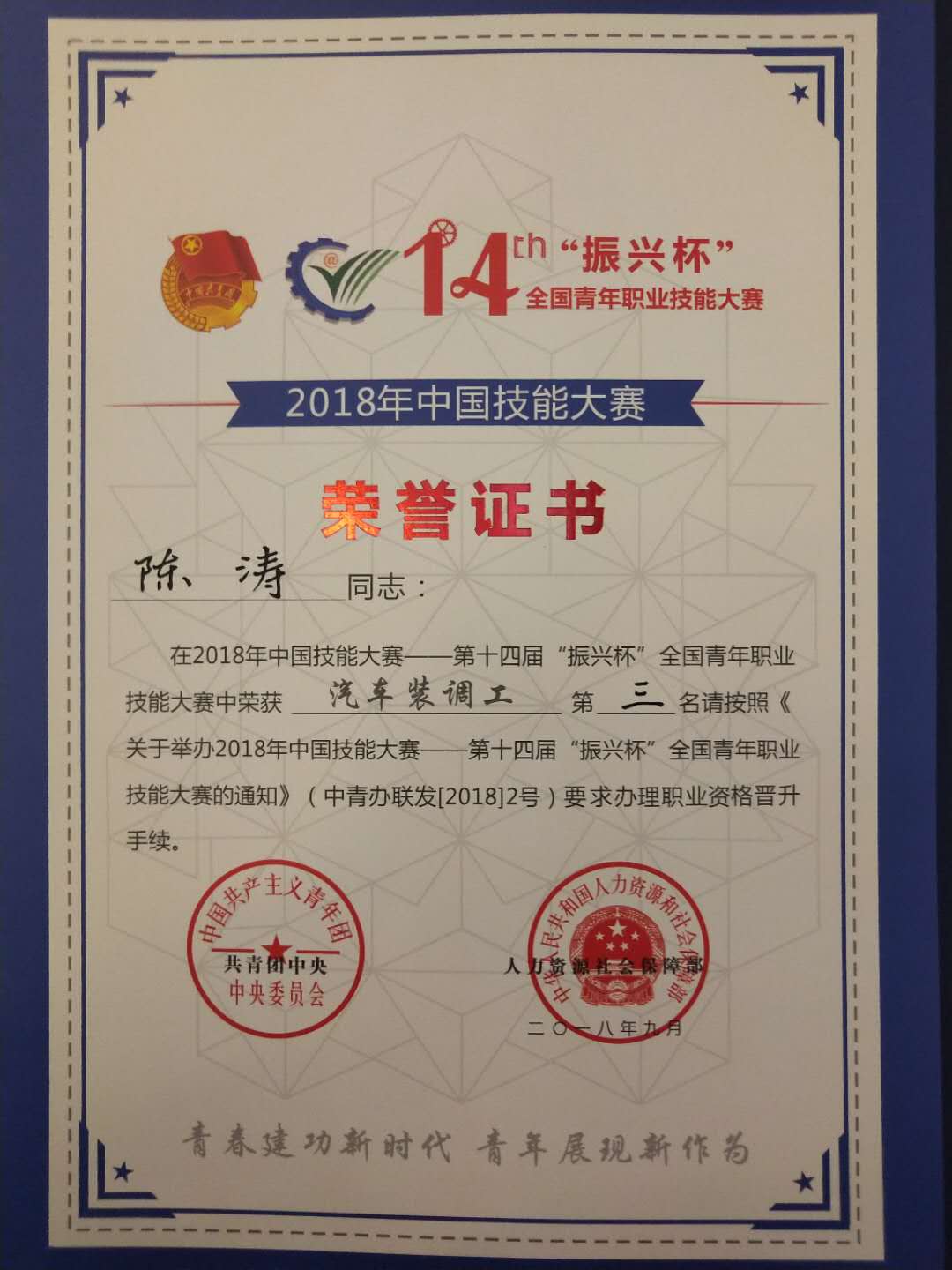 参加集训的六名选手从来自全国120名选手中脱颖而出,均进入前二十,我校学生陈涛获得第三名并与参加集训的另外一名选手同获全国技术能手,其余四名选手均获全国青年岗位能手。