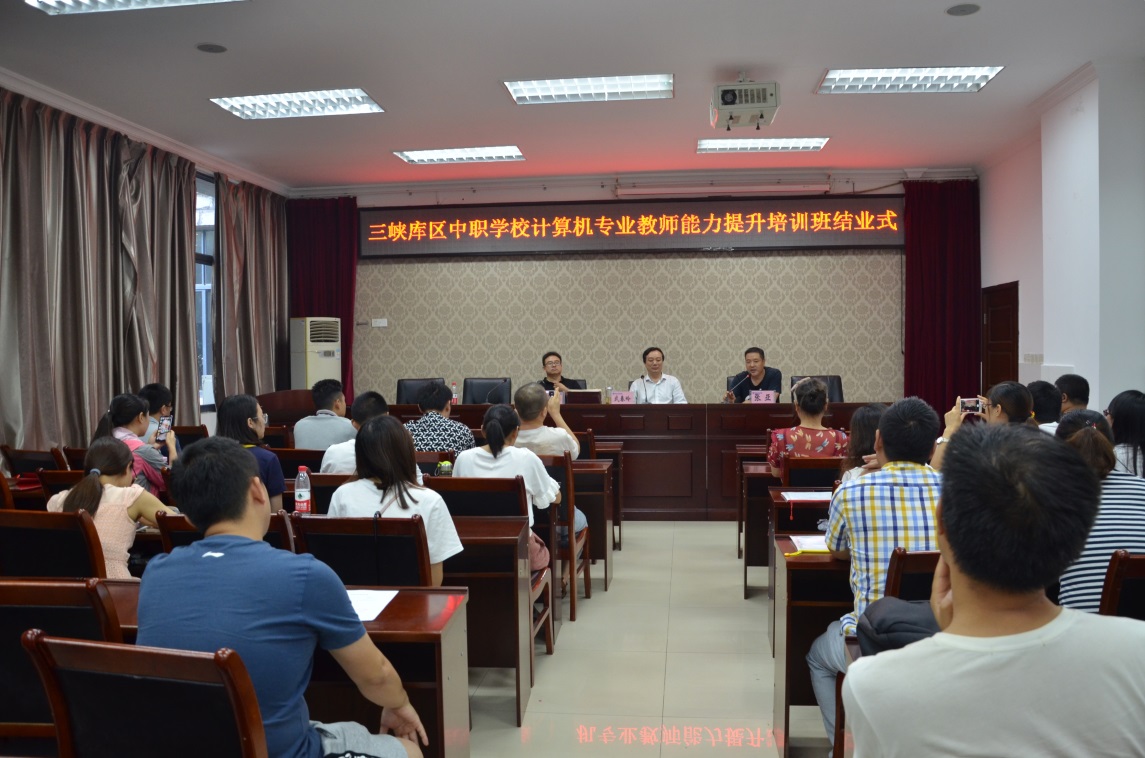历时一个月的“三峡库区中职学校计算机专业教师能力提升培训班”于7月23日下午在我校国培基地举行结业式,人工智能与大数据学院院长武春岭,培训与继续教育中心主任陈志军,以及来自三峡库区中职学校的30名学员参加了结业式。结业式由培训与继续教育中心培训部主任张亚主持。