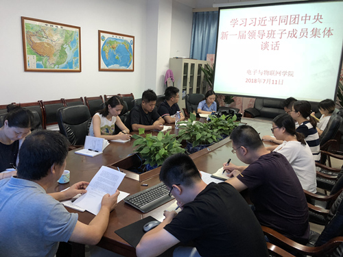 电子与物联网学院党总支书记张红斌教授组织全体辅导员以及部分团总支学生的主要干部就习近平总书记同团中央新一届领导班子成员集体谈话进行了集中学习和谈论。并表示以后要牢牢把握坚持把培养社会主义建设者和接班人作为根本任务;把巩固和扩大党执政的青年群众基础作为政治责任;把最大多数青年紧紧凝聚在党的周围;把围绕中心、服务大局作为工作主线;切实做好我院共青团工作和青年教育工作。