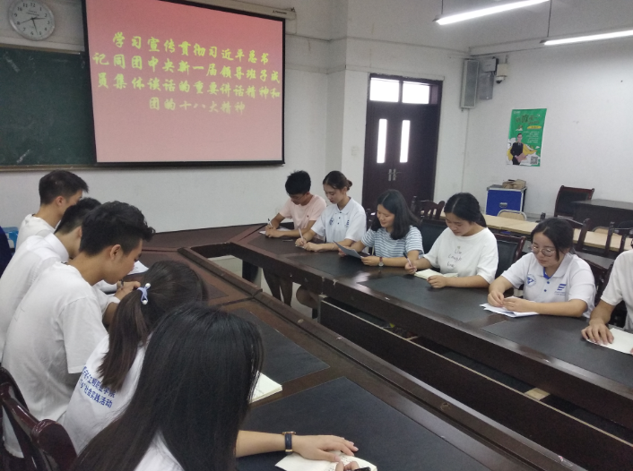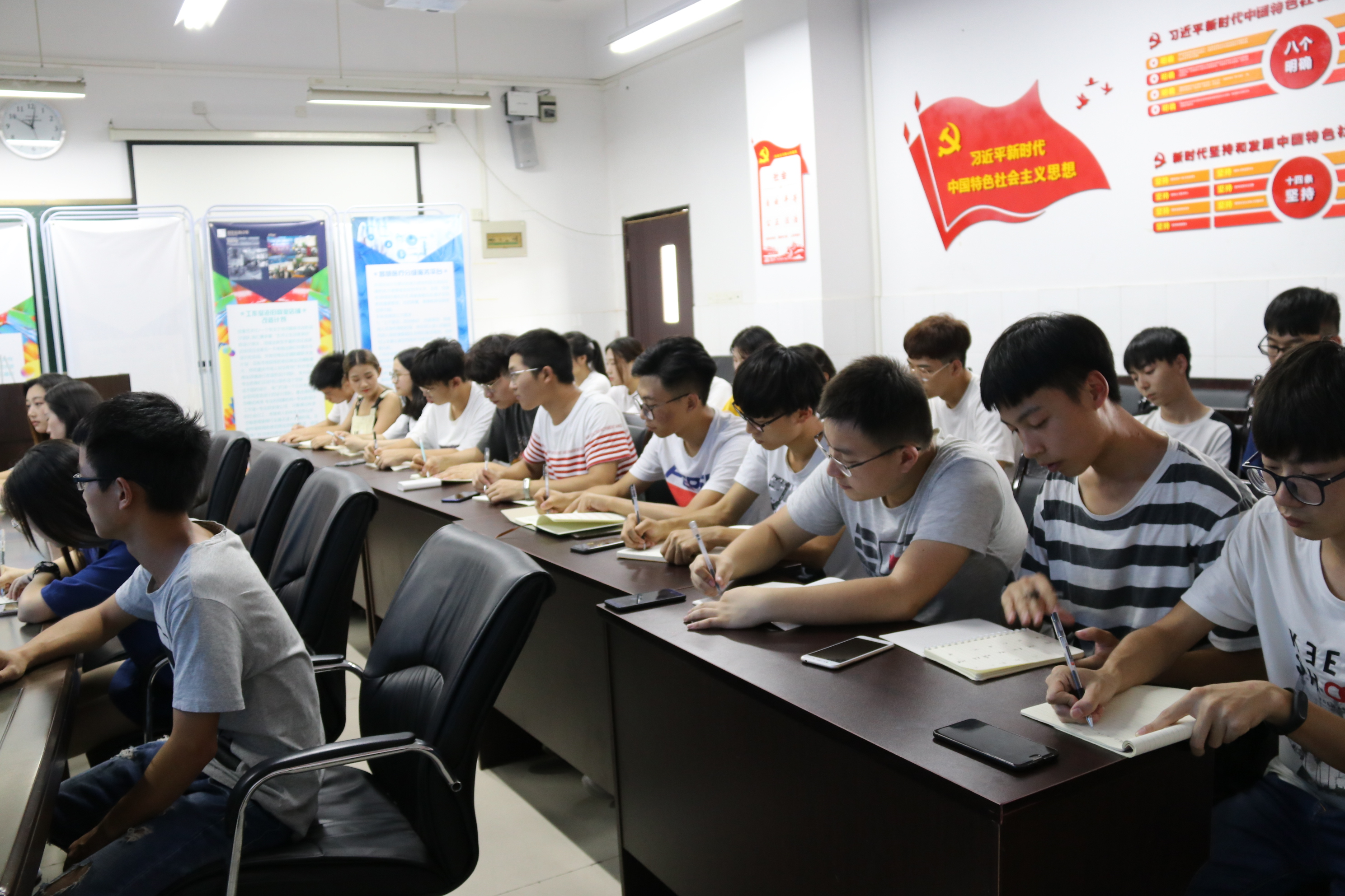 2018年7月10日上午9时,团委组织主要团学干部在7201会议室进行集中学习讨论。
