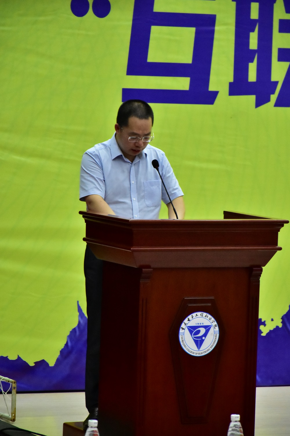 2018年6月26日下午2时,由重庆电子工程职业学院主办、重庆电子工程职业学院创新创业中心承办、人工智能与大数据学院协办的“第四届‘互联网+’大学生创新创业大赛”于南区博远厅正式举行。本次大赛有幸邀请到杨保、程佳、黄海、师唯伟、陈思亮五位专家作为评委,并邀请我校领导龚小勇、冉学农、谢义华、刘成俊等人作为观礼嘉宾。本届大赛以“勇立时代潮头敢闯会创,扎根中国大地书写人生华章”为主题,旨在发掘大学生创新创业潜能,向改革开放40周年致敬,向新时代献礼。