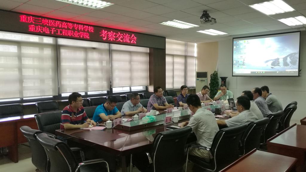 6月28日下午,重庆三峡医药高等专科学校党委副书记、校长陈地龙,党委委员副校长谭工、沈力,教务处处长苏绪林,基础医学部主任李小山,科技处副处长曾岗等一行7人来我校考察交流智慧校园建设。学校聂强校长,刘成俊副校长,图文信息中心党支部书记、信息管理服务中心朱强主任、质量管理中心钟国祥主任,教务处邓小龙科长热情地接待了来访的客人,并在三楼博德楼会议室召开了座谈会,座谈会由聂强校长主持。