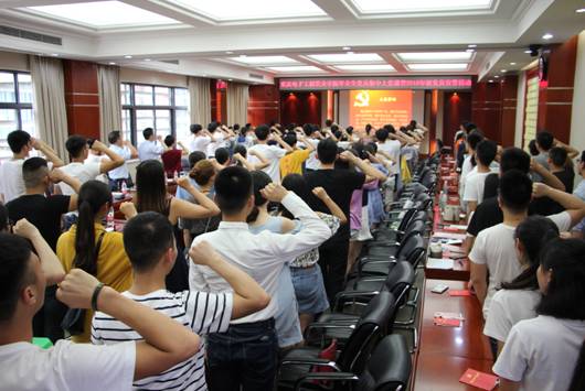 在庄严的国歌声中活动拉开了序幕。全体党员面向党旗,在机关党委书记、党委组织统战部副部长徐继燕领誓下庄严宣誓。随后,党委副书记唐玉林以“新时代新思想 新使命”为主题为与会党员上了生动一课,他全面解读了新时代深刻内涵、新思想产生背景和新思想的主要内容,要求毕业生党员牢记共产党人的初心和使命,将个人前途与祖国命运紧紧联系在一起,牢固树立“四个意识”,不断加强各方面学习,在思想上永远与党中央保持高度一致,始终坚定跟党走的决心和信心,将党员作为一面旗帜,在未来的工作中、学习中勇争第一,用心服务社会,成为新时代伟大事业的建设者和中坚力量。