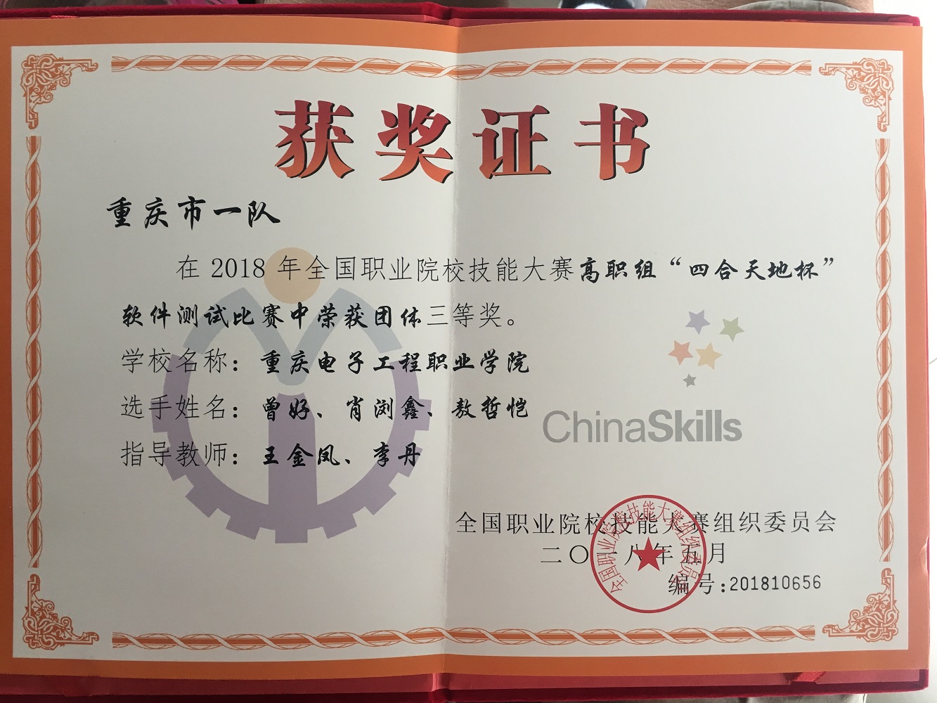 5月31日,2018年全国职业院校技能竞赛高职组“软件测试”赛项在河南许昌落下帷幕,由我校人工智能与大数据学院王金凤、李丹老师指导的曾好、肖浏鑫、敖哲恺三位同学组成的参赛队,获得该赛项的三等奖,是重庆市参赛的四支代表队中成绩最好的参赛队。
