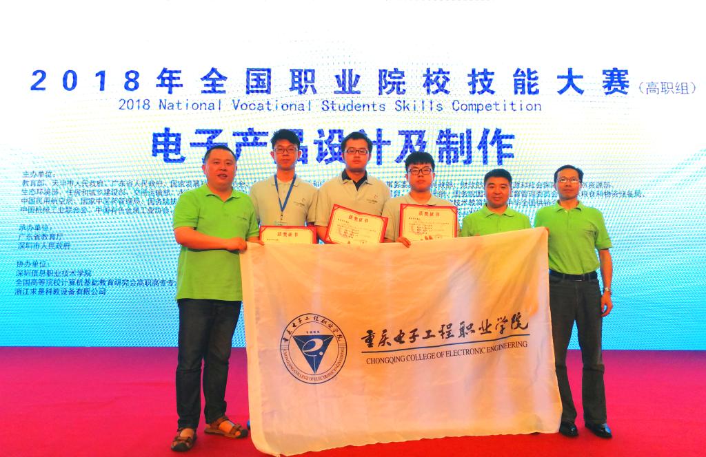 在5月24日决赛中,由我校电子与物联网学院夏西泉副院长带队,陈学昌和刘睿强老师指导的李潇界(光电技术专业)、黄梓豪(应用电子技术专业)和汪宇(应用电子技术专业)学生代表队在全国69个参赛校中经过激烈角逐,以总分第9的成绩荣获全国二等奖。这是我院继本月初在“物联网技术应用”赛项中喜获全国一等奖后再获佳绩。