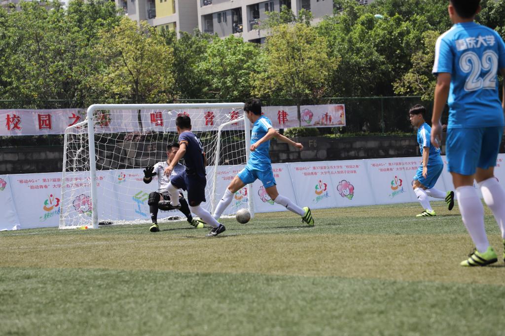 本次大学生“五人制”男子足球赛历时四天,吸引了全市46所高校550余名选手参赛。比赛分为本科院校组和高专高职院校组两个组别,分别进行了淘汰赛、半决赛、决赛三个环节的激烈角逐。最终,重庆大学、重庆电子工程职业学院分别获得冠军,重庆文理学院、重庆电讯职业学院分别获得亚军,重庆三峡学院、重庆轻工职业学院分别获得季军。重庆大学张港同学、重庆电子工程职业学院肖谷平同学获得“最佳球员”奖,重庆大学刘召其同学、重庆电子工程职业学院李俊辉同学获得“最佳守门员”奖。