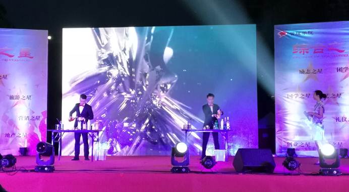作为职教活动周我院系列活动之一,职业技能展示也是庆典上的重要环节:《花样年华》礼仪秀展示了同学们扎实的礼仪基本功和良好的T台feel,《茶韵酒香》展现了西式调酒和中式茶道专业功底,台下掌声雷动,荧光飞舞。