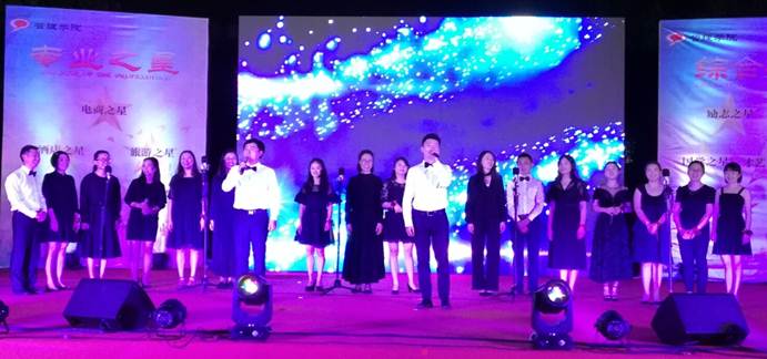 管理学院教师大合唱《我期待》将庆典推向了高潮,整齐的着装,挺拔的身姿,专业的音乐功底,赢得观众阵阵喝彩,让本次活动达到高潮。