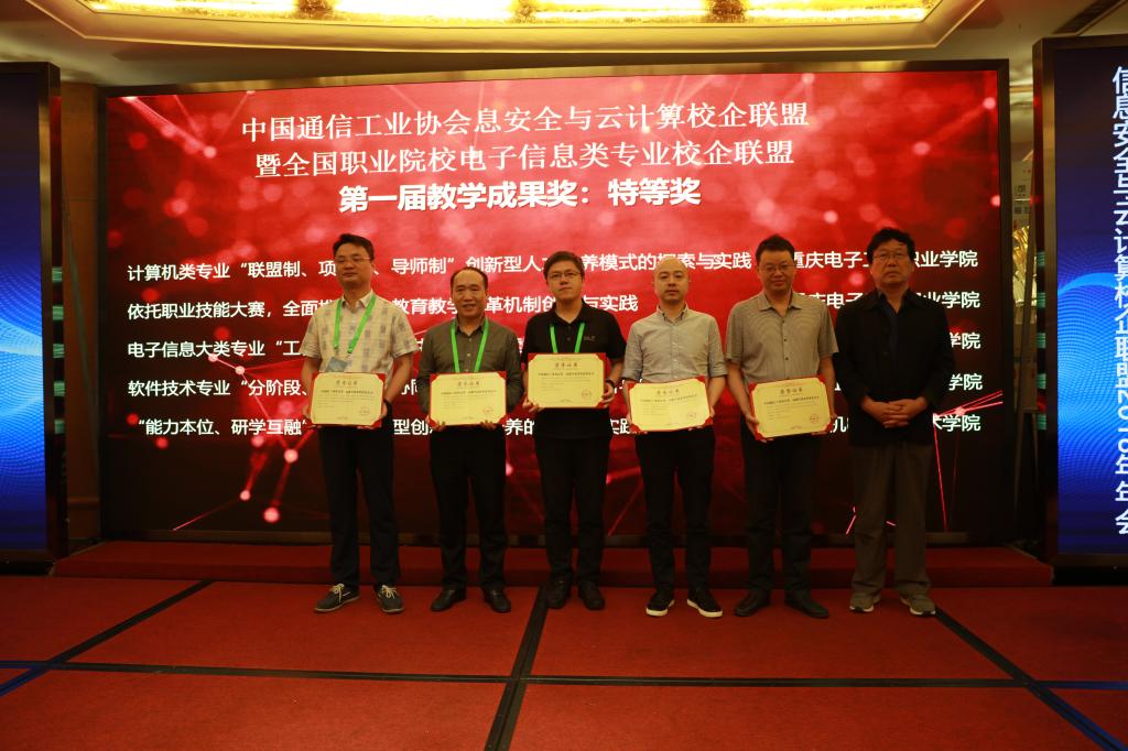 年会上还举行了中国通信工业协会教育教学成果奖、“全国计算机类优秀教材”颁奖仪式和联盟理事单位授牌仪式。我校获特等奖2项、一等奖6项、二等奖1项,另有4部教材被评为“全国计算机类优秀教材”。