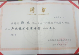 近日,我校机电学院教授郑杰博士被电子科技大学机器人研究中心授予产业技术首席专家称号,以此表彰其在学术研究和产学研推进方面取得的成绩。