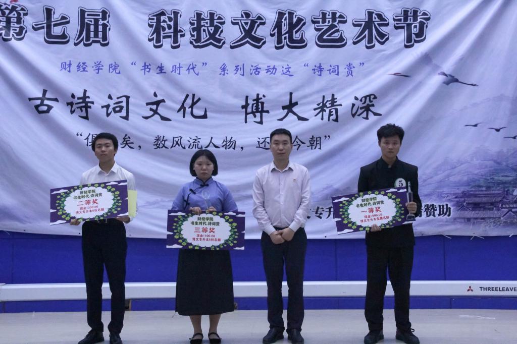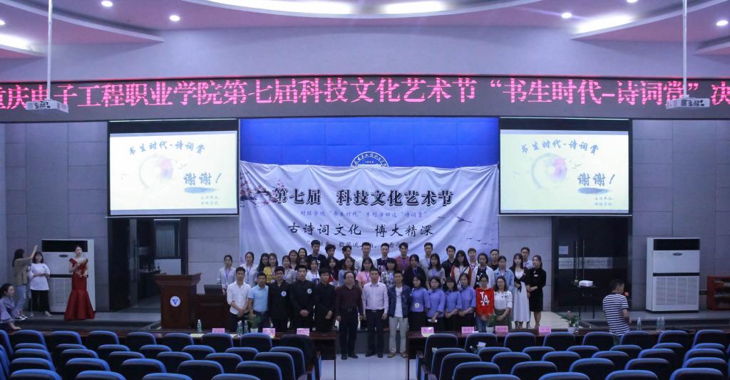 4月18日晚6点,由财经学院团总支承办的重庆电子工程职业学院第七届科技文化艺术节‘书生时代-诗词赏’决赛在博远厅顺利举行。