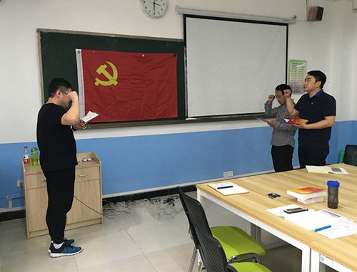 本月教师党支部有毛弋、刘宝锺两位同志过政治生日。支部书记李明同志代表党支部为两位同志填写并送上生日贺卡,两位过政治生日的同志在全体党员的见证下重温了入党誓词。宣誓结束后,两位同志表示收到组织的政治生日贺卡十分激动,又一次重温入党誓词更让自己心潮澎湃,仿佛回到了当年入党宣誓的场景,也更明确了自己的初心和使命。未来的工作学习生活中,在以习近平同志为核心的党中央坚强领导下,我们应在新时代勇担新使命,在新形势下争取新作为,为早日实现中华民族伟大复兴的中国梦不懈奋斗!