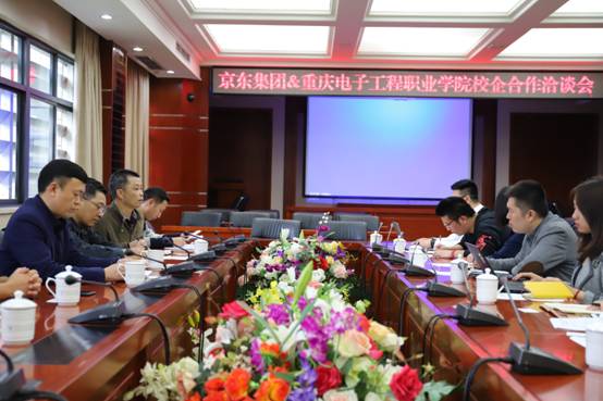 2018年3月28日,我校与京东集团在学校博润厅举行校企合作洽谈会,双方就电商、物流等前沿科技达成合作意向。我校副校长刘成俊教授、管理学院院长黄志平教授、合作发展处处长莫绍强教授、管理学院营销系、商贸系、物流系、合作发展部负责人,京东集团便民校园平台管理部负责人刘小明,京东集团X事业部校企合作项目经理王赟、无人超市商务经理兰莹,京东集团西南便民校园平台管理部负责人谢慧、物流运力负责人周俊华、业务拓展负责人李志达,京东集团重庆便民校园平台管理部负责人杨明、京东集团重庆人力资源负责人王磊参加了项目洽谈对接。会议由合作发展处处长莫绍强教授主持。
