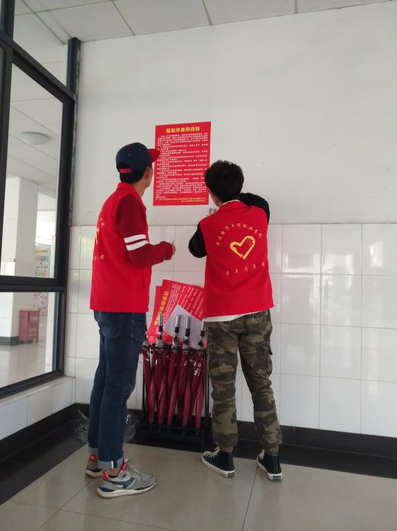 为了避免偶遇雨天的尴尬,在爱心伞宣传活动后,志愿者们在教学楼2栋,3栋,7栋,8栋,10栋分别放置了爱心伞借用点,在各栋宿舍门口也放置了爱心伞收纳箱。让重电校园的各个角落,各个细节的都体现了我们的雷锋精神,青志精神。