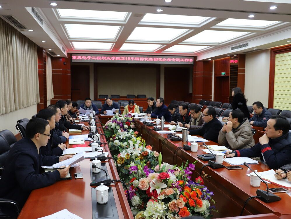 2018年1月8日上午,我校2018年国际化集团化办学专题工作会在博润厅召开,研究、布署学校2018年学校国际化办学、集团化办学以及校企合作相关工作,校长聂强和副校长幸昆仑、龚小勇参加了会议。会议由龚小勇副校长主持。