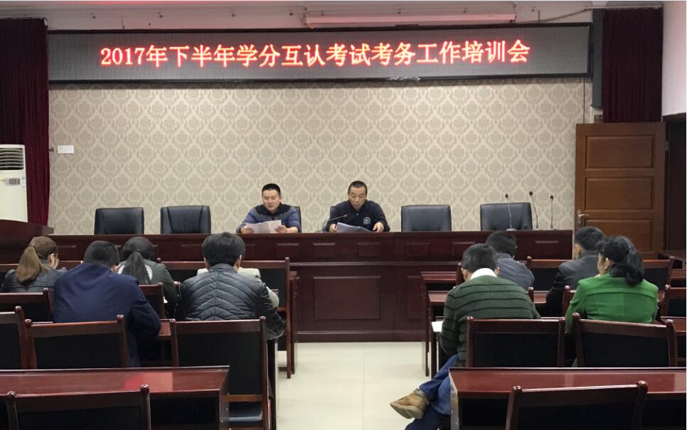 2017年下半年的学分互认考试在11月11-12日在我校南校区教学楼2幢顺利进行。为进一步规范考务相关工作,11月11日上午8:00培训与继续教育学院党总支书记吴焱岷对参加本次学分互认考试监考教师进行考务工作培训。