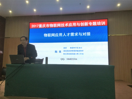 2017年10月20日,我校物联网学院院长、国家级技能大师工作室领衔专家陈良教授应邀为重庆市物联网技术应用与创新专题培训班授课,做了《物联网产业人才需求与对接》专题讲座。