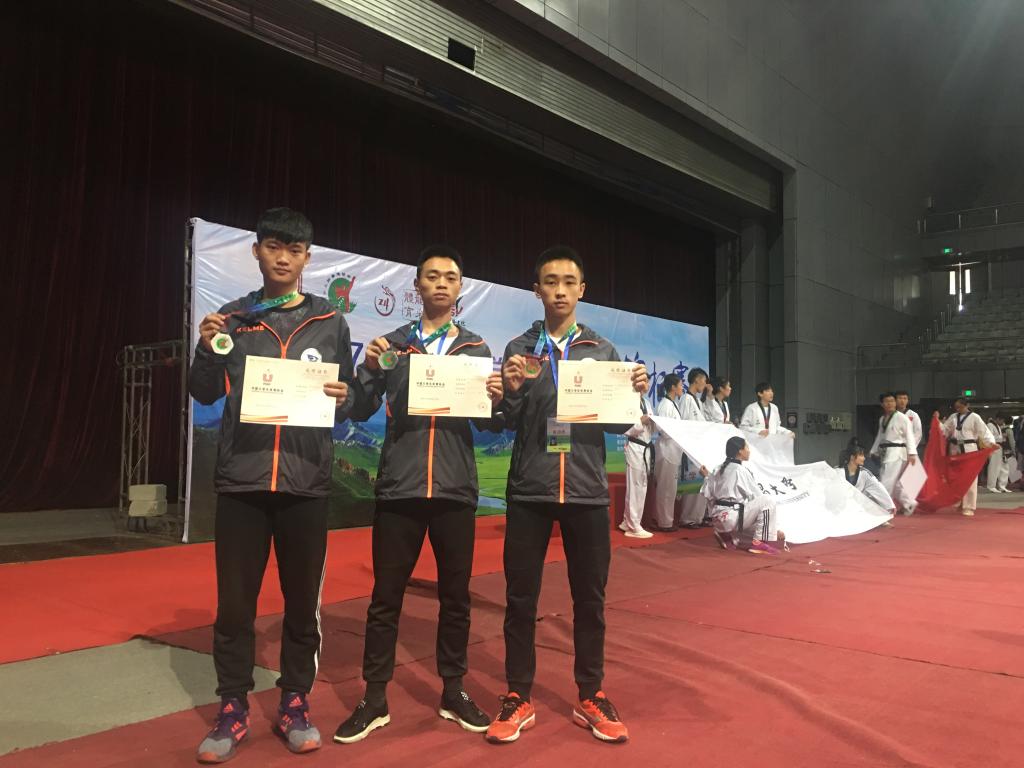 9月26-30日由中国大学生体育协会主办,包头市体育局承办的2017年中国大学生跆拳道(竞技)锦标赛在内蒙古包头市奥林匹克体育馆举行。本次比赛共有1000多教练员与运动员参加。我校跆拳道代表队共13名运动员在领队金琳院长、教练倪军,罗安,方伟三位老师的带领下参加比赛,共获得两银一铜及七个第五名,并获得男子团体总分第二名的优异成绩,在本次比赛中较好的完成了我校代表队的新老交替。