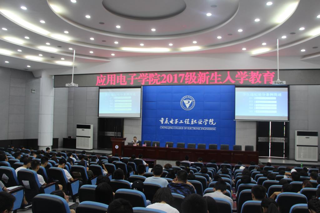 良好的开端是成功的一半,为了更好地帮助新生迎来生活新篇章,开启人生新征途, 我校应用电子学院于9月7日,在南校区博远厅举行了2017级新生入学教育交流会。本次交流会旨在协助2017级新生尽快转变角色,树立大学主人公意识,以充满青春活力的全新面貌紧追大学学习生活的节奏和步伐。出席的领导有应用电子学院院长王正勇教授和学管科科长兼团总支书记张力老师。
