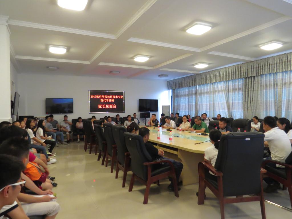 9月5日,2017级软件学院软件技术专业现代学徒制班家长见面会在教学楼4505会议室举行。软件学院副院长曾晓宏、副院长李林、软件学院学管科科长万鹏、软件技术专业教研室主任项刚、班级负责人、相关专业教师和现代学徒制2017级新生班学生及家长参加了见面会。
