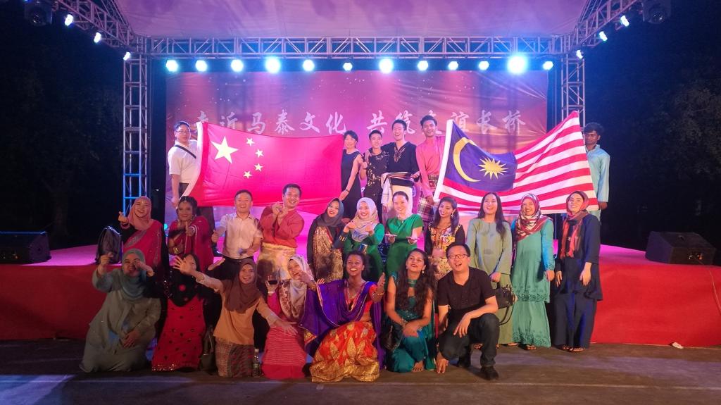 最后,在马来西亚师生和学生志愿者表演的群舞《Poco Poco》欢快的节奏下,全场激情四射、活力十足,充满动感的音乐、酣畅淋漓的动作,把全场气氛引向高潮,台上泰国和马来西亚的留学生们索性走下舞台,来到观众席,邀请现场观众一起加入他们的欢乐之中。