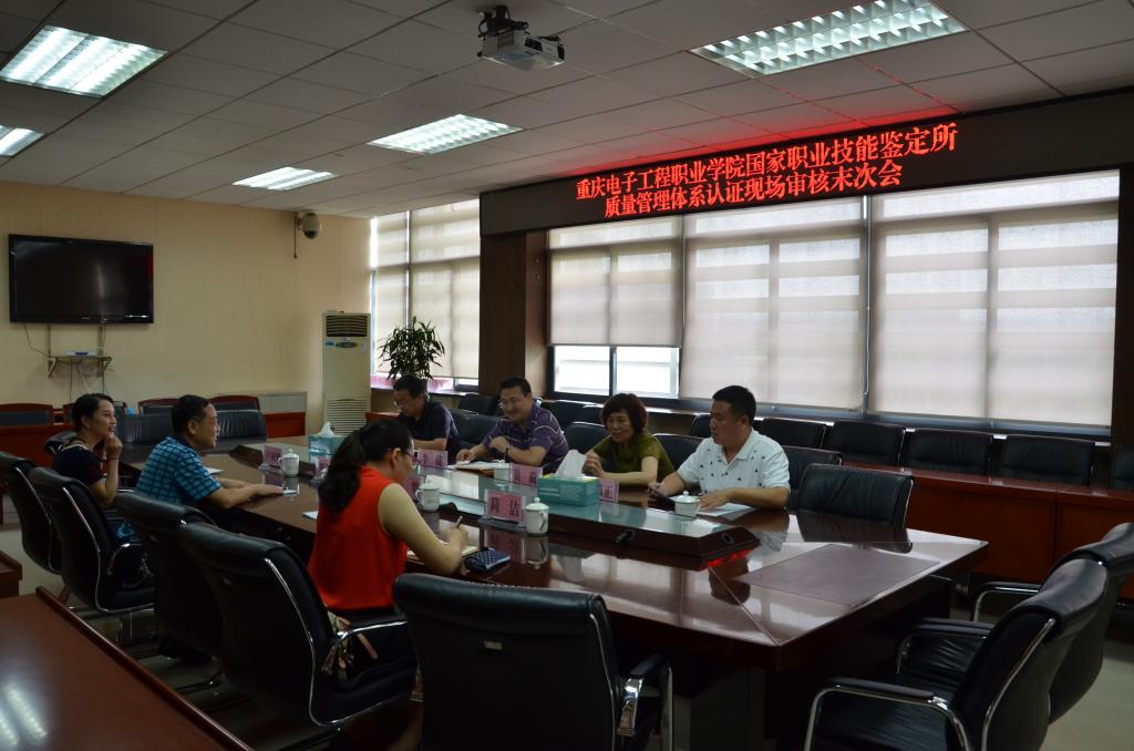 在质量管理体系现场审核首次会上,我校国家职业技能鉴定所分管副校长龚小勇首先简要介绍了我校是基本情况和鉴定所的发展情况,并表示,我校国家职业技能鉴定工作开展以来,得到了国家、省市相关单位的大力支持,工作水平不断提高,在深化职业资格制度改革、健全技能人才多元评价体系的大背景下,对当前的技能鉴定工作提出了更高的要求,希望此次参与审核认证的专家多提宝贵意见,推动我校国家职业技能鉴定工作进一步发展。然后,我校国家职业技能鉴定所所长刘松就质量管理体系建设和试运行情况作了汇报。尔后,专家组组长李健说明认证审核的目的、范围、方法和程序;并介绍认证审核员分组分工、认证审核安排及相关要求。重庆市人力资源和社会保障局职业技能鉴定指导中心罗晓欧书记对本次质量管理体系现场认证审核的重要性做了说明,并代表市职业技能鉴定指导中心对学校国家职业技能鉴定所的工作给予大力支持。最后,国家人力资源和社会保障部职业技能鉴定中心质量督导办朱兵就现场审核工作进行了强调。