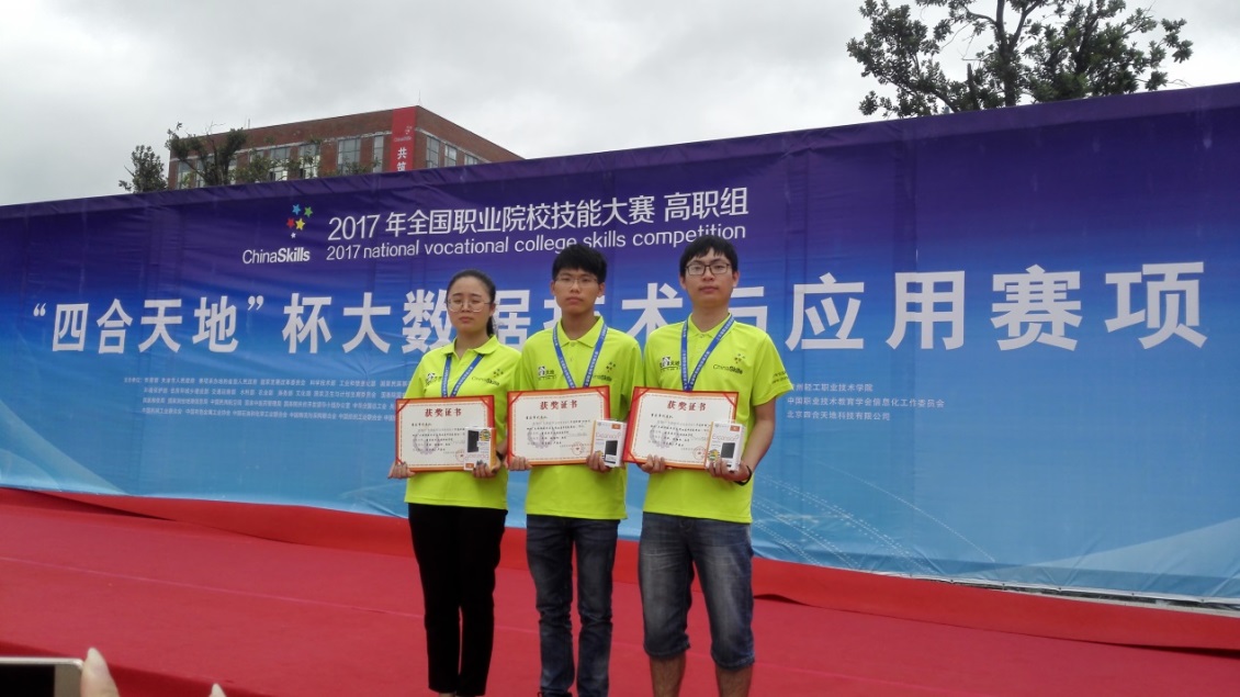 2017年6月9日,第十届全国职业院校技能大赛高职组“四合天地”杯大数据技术与应用赛项在贵州轻工职业技术学院落下帷幕。由软件学院副院长李林教授带队,朱堂勋、卢建云老师指导的软件学院学生卓洪、赵俊、赵朝权三位同学组成的参赛队,经过4个小时紧张激烈的比拼,获得“大数据技术与应用”赛项团体二等奖。该奖项是重庆参赛学校最好的成绩,也是除该赛项承办校贵州轻工院以外西南地区高职院校最好的成绩。
