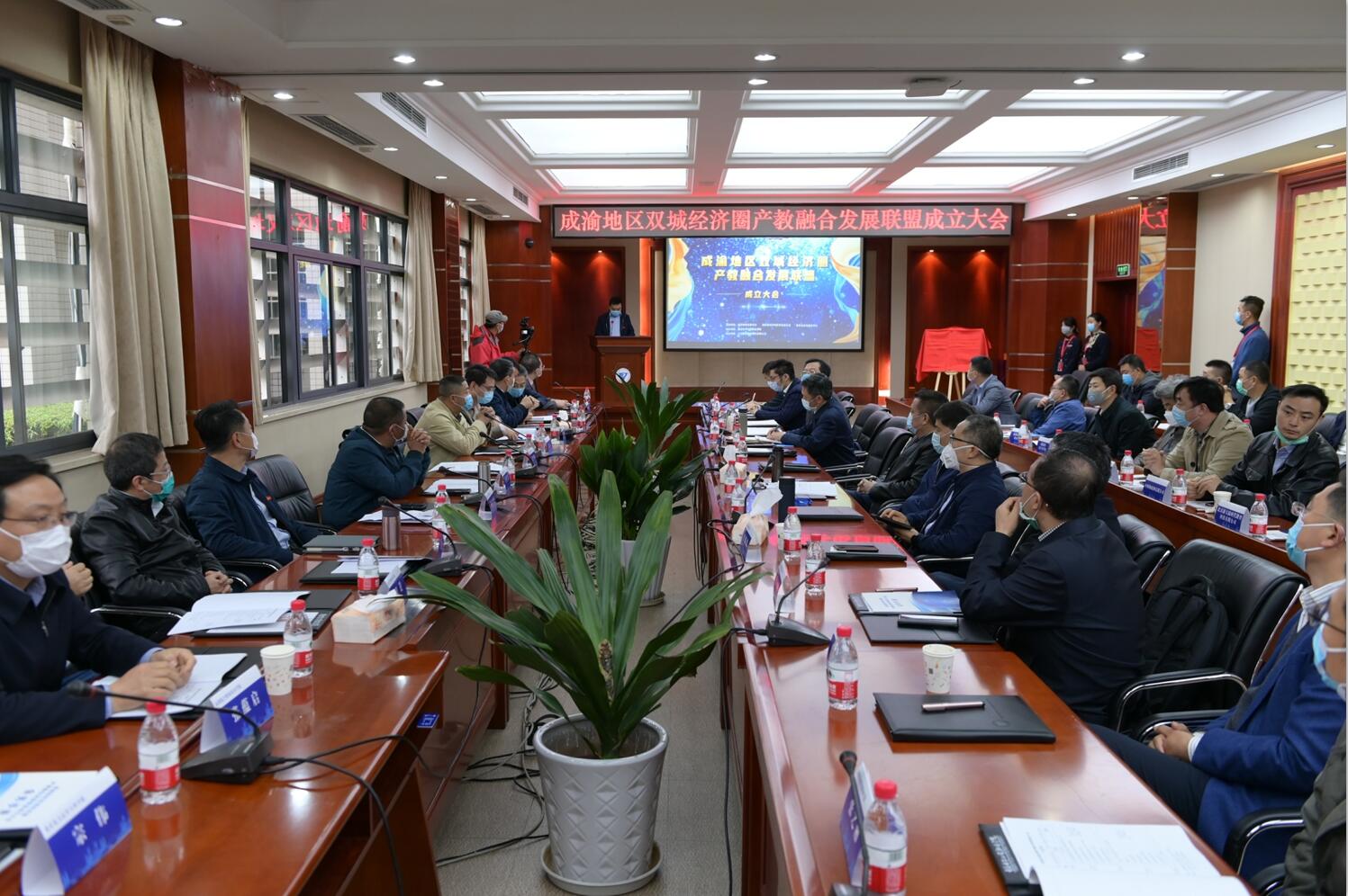 会上,相关领导及嘉宾进行了“成渝地区双城经济圈产教融合发展联盟”揭牌仪式。