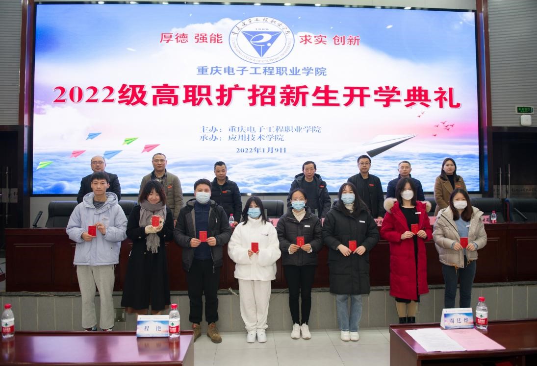 2022年1月9日上午,应用技术学院2022级新生开学典礼在学校博远厅举行。出席此次典礼的有校党委学工部部长何光明、招生就业处处长王文、财经管理学院院长黄志平、党政办副主任何晓庆、教务处副处长陈进、应用技术学院副院长李晓斌和教学运行科负责人蔺朝莉、应用技术学院相关工作人员以及51名来自不同类别、行业的优秀学子。