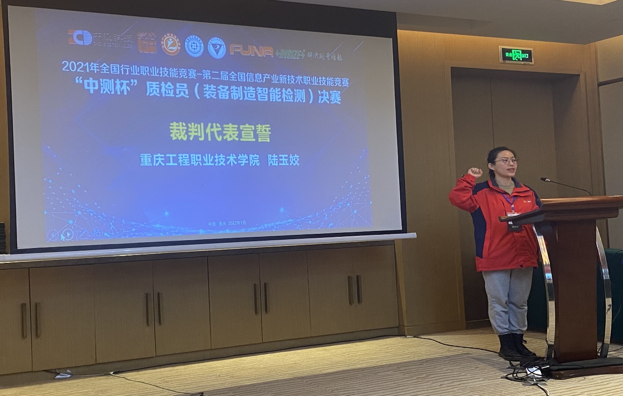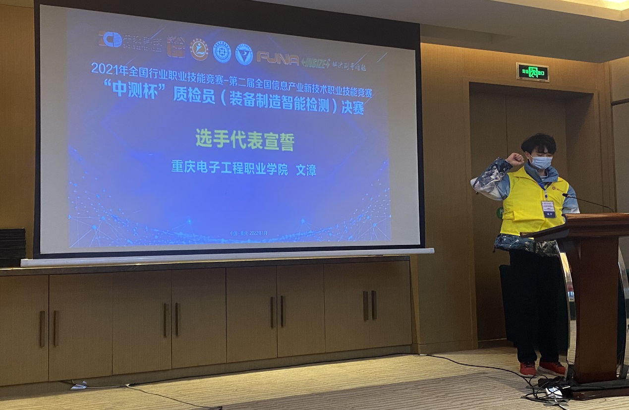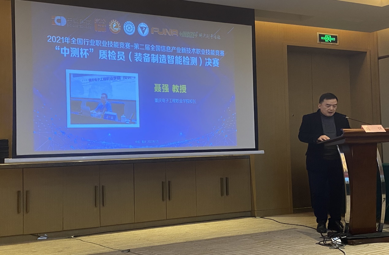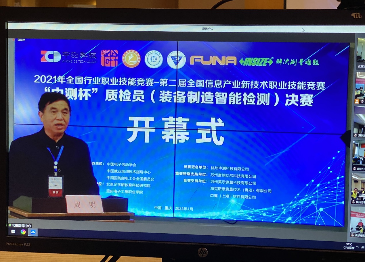 由人力资源和社会保障部批准,中国电子劳动学会、中国就业培训技术指导中心、中国国防邮电工会全国委员会联合主办;中国电子劳动学会综合办公室赛事承办;北京企学研教育科技研究院、重庆电子工程职业学院竞赛承办;杭州中测科技有限公司竞赛冠名单位;苏州富纳艾尔科技有限公司竞赛特别支持;苏州英示测量科技有限公司、海克斯康测量技术(青岛)有限公司、杰魔(上海)软件有限公司提供技术支持的2021年全国行业职业技能竞赛--第二届全国信息产业新技术职业技能竞赛“中测杯”质检员(装备制造智能检测)竞赛决赛开幕式于2022年1月5日在重庆主会场和云端同步8个分赛场正式拉开序幕。来自全国企事业单位和各大院校的30多支代表队、45支教师代表队、38支学生组代表队的参赛选手代表参加了本次线下和线上开幕式。本次大赛以“新时代、新技能、新梦想”为主题,会议由中国电子劳动学会副理事长周明线上主持。