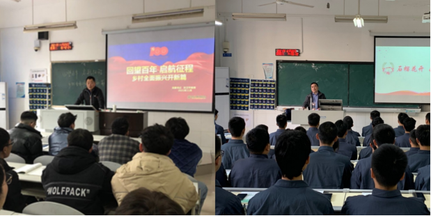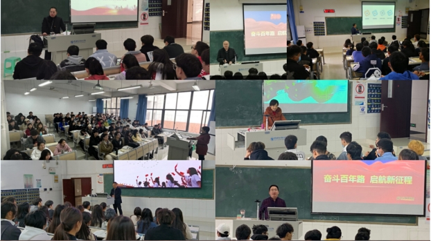 从本学期11月起,学校领导班子分别深入课堂开展“形势与政策”课专题教学,主要围绕“奋斗百年路 启航新征程”、“谱写乡村全面振兴新篇章”等主题开展教学。