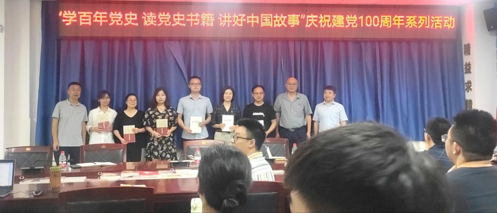 学院开展“学百年党史,读党史书籍,讲好中国故事”庆祝建党100周年系列活动。为支部师生统一采购党史类优秀书籍,并邀请校领导幸昆仑同志、党总支书记张红斌同志向教师代表和团学青年赠送党史书籍;在教师办公室打造党史书籍“图书角”,在学生党员活动室新增党史学习资料,为师生提供丰富的学习资源,并通过主题党日开展读书分享活动,营造良好的学习氛围,在师生中掀起全体阅读红色经典的学习热潮。