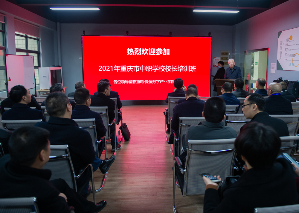 2021年12月8日上午,在我校参加重庆市中职学校高质量发展校长专题培训班的各位领导莅临重电·曼恒数字产业学院考察交流。我校数字媒体学院院长、重电·曼恒数字产业学院院长刘晓东,影视动画系罗坚主任,上海曼恒数字技术有限公司马亮出席本次交流会,会议由重电·曼恒数字产业学院营销总监熊鸿志主持。