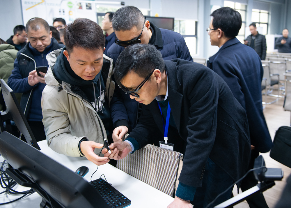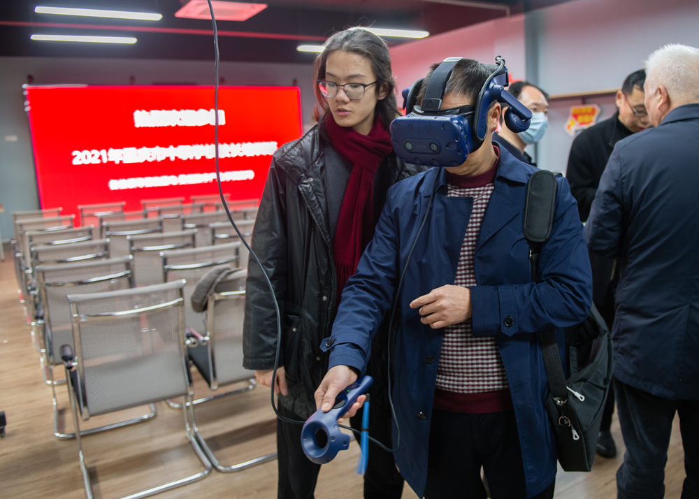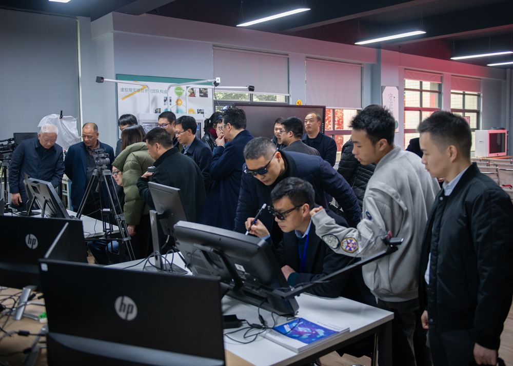 最后,在刘晓东院长的陪同下,与会人员参观了重电曼恒数字产业学院的研发中心、制作中心,体验了产业学院的虚拟仿真项目,各位领导对重电曼恒数字产业学院取得的成果给予了高度评价。